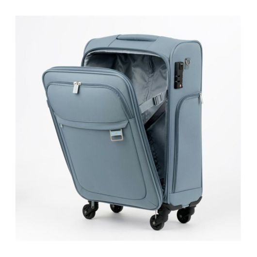 脱着可能なショルダーベルト付きスーツケース。他に荷物を持っての階段や舗装されていない道路で重宝します。キャスターも脱着可能で家庭での保管時キャスターの汚れを持ち込むストレスから解放されます。USBポート付きで、別売りのモバイルバッテリーを接続することでスマホ等の充電ができます。メインファスナーはこじ開けに強い防犯ファスナーを使用しています。