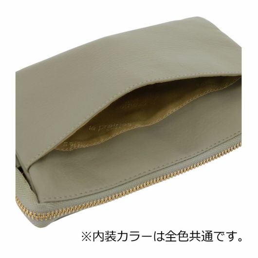 柔らかなレザーを使用したお財布ポシェットです。ショルダー紐をはずしていただくと、クラッチバックのような感覚でも使用できる2Wayタイプです。