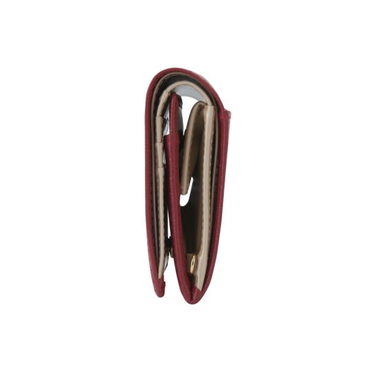 上品なパール仕上げの光沢感がエレガントな雰囲気を演出するエンボスレザーを使用