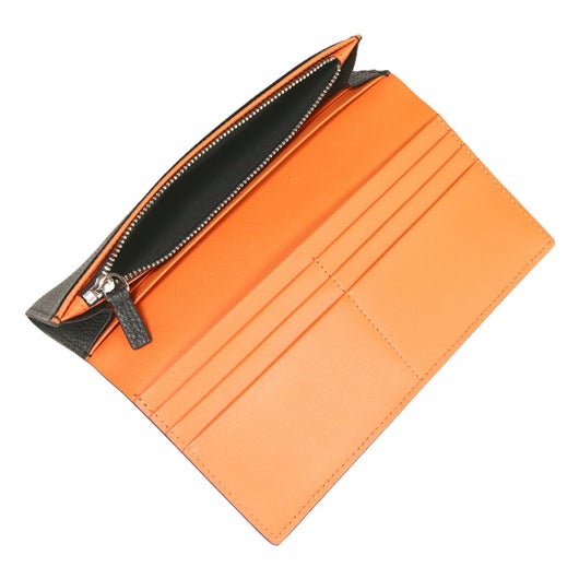 ビジネスにも適したスタイリッシュな外観英国風のオーセンティックな逸品を輩出し続けるMACKINTOSH LONDON。こちらはシンプルでベーシックなシリーズ『MEDAL』のスタイリッシュな長財布。深みのあるシュリンク型押しレザーにメダル形状のロゴプレートがさりげなくエレガントさを加え、ビジネスシーンにも違和感なくお使いいただけます。本体はフラップタイプで大きく開き、一目で中身を見渡せます。フラットなシルエットながらも、紙幣、カード、小銭をすっきり仕分けられるスペックを装備。レシートやチケットの仕分けに丁度良いポケットも備わるので、常に整頓された内装を保つことができます。外側背面にもポケットを装備。すぐに取り出したいチケットやカードがある際には、こちらに収納しておくとスムーズに取り出せます。本体素材にはソフトな質感が心地良く手に馴染む牛革スムースを採用し、内装革は存在感のあるオレンジの配色で統一しています。表面のシュリンク型押しは大人の印象を引き立たせるだけでなく、傷が目立ちにくいメリットも。外側のヘリは総コバ塗りとなっており、スッキリとした外観に仕上がりました。に丁度