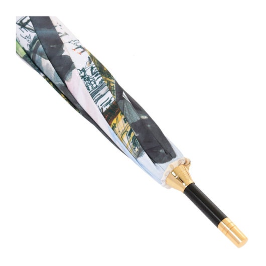 作品がダイナミックに描かれたインパクトのある長傘です。個別に8枚プリントしたものをつなぎ合わせています。