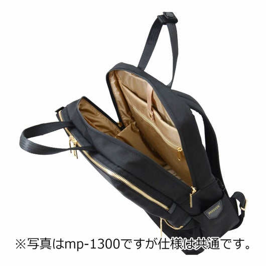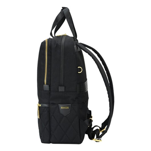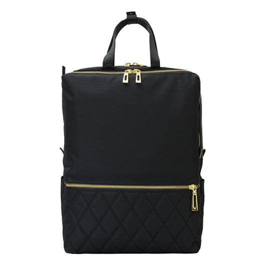 A4対応の軽量リュック。カジュアルでもビジネスでもどんなシーンにも合わせやすいシンプルなデザイン。フェイスのキルティングが都会的な雰囲気を演出します。裏地とファスナーのゴールドがアクセントになっています。