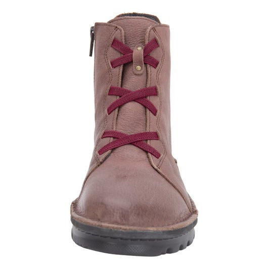 とにかく軽い!アウトソールは超軽量三層構造。アンクル丈のゴム編み上げタイプのショートブーツ。配色がポイントで内側側面にファスナーがついているので脱ぎ履きしやすいデザインです。