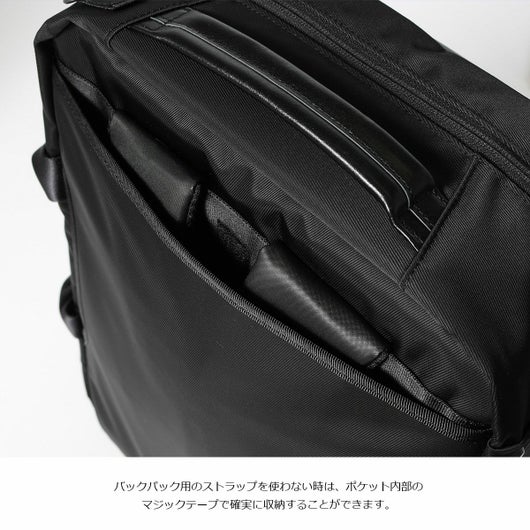 本体素材は環境汚染の誘因となる溶剤等を約90%排除された環境に優しいエコな高耐久ポリウレタンを表面にコーティングした600dポリエステル生地を使用しています。表面は綾織りをイメージした離型紙を使用することで微妙な光沢感を持たせながらゴムライクな質感が特徴的な素材です。付属生地は、タテ糸ヨコ糸に120dの不純物の少ないナイロン糸、東レ(株)のミラコスモRを使用しています。カルゼ織りすることで上品な光沢感のあり、斜めにくっきりと入った畝が特徴の生地です。さらに裏面にPVC加工を施し防水性とハリ感を持たせていま