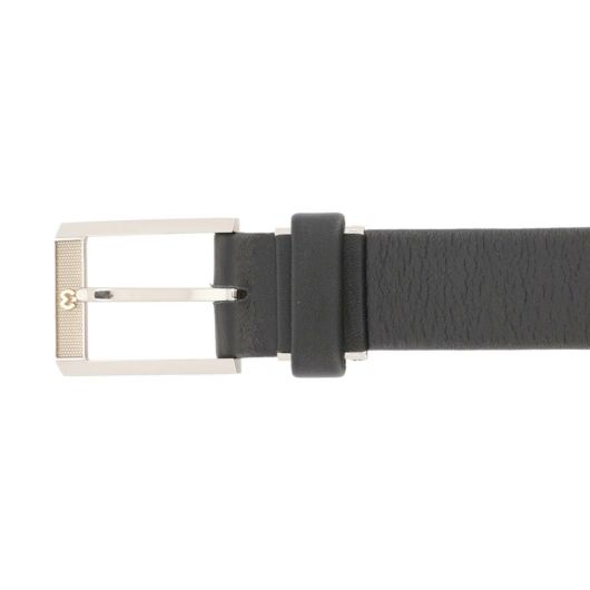 ソフトで滑らかな手触りのスムースレザーを使用しています。バックルにはロゴと柄がさりげなくあしらわれ、シンプルさと高級感を併せ持つ1品です。