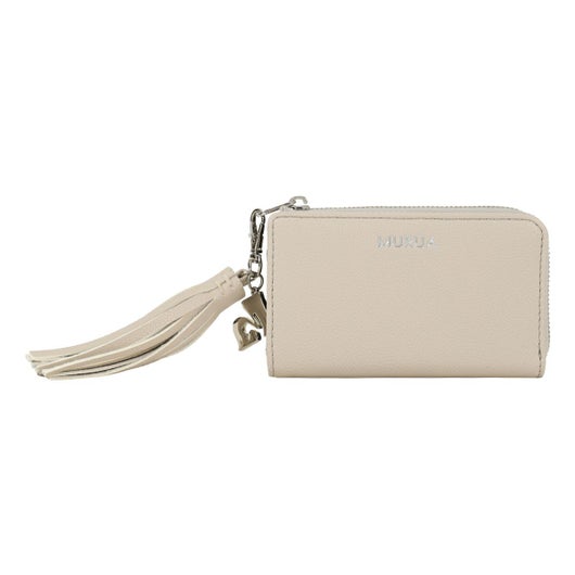 キズが付きにくく、手触りの柔らかなシュリンクシボを使用した新シリーズ。本体と同素材を使用したタッセルにはMURUAのMを使用したメタルが付いており上品なデザインに華やかさもプラス。タッセル付きシルバーチャームは取り外し可能で、他の物に付けてもお使いいただく事が可能です。