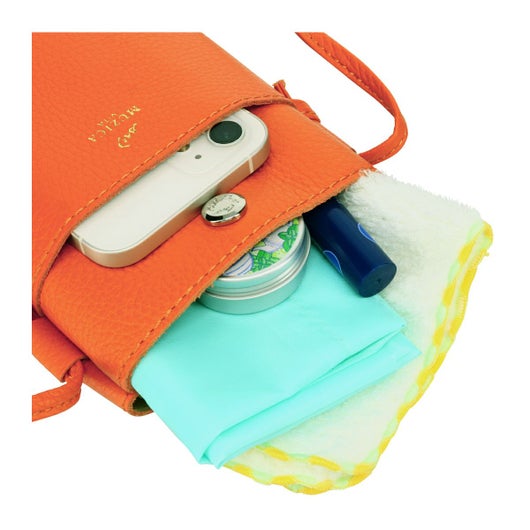 「大好きなお菓子をかわいく持ち歩きたい!」そんな思いから作った、カラフルな小物シリーズ。柔らかいイタリア牛革を使用した、スマホショルダーポーチ。とても軽く、水濡れや汚れにも強い素材なので、日常使いもしやすいです!ちょっとしたお買い物から、旅行など、様々なシーンで使えて便利です♪箱入りのスティック菓子がちょうどよく入ります♪