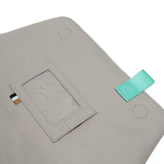 カラーが爽やかな背面のベルトにはキャリーバッグのハンドルが通せ、旅行や出張時の移動が快適です。