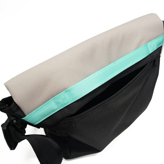 ショルダーストラップに使われた防水レザーがアクセントになっています。