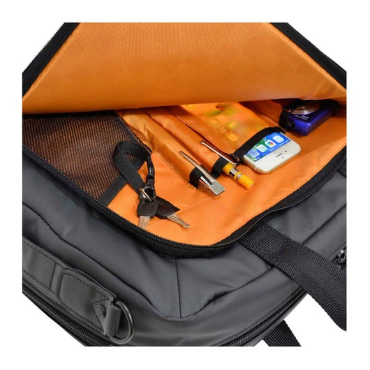 前面:ダブルファスナーポケット×1(内側 メッシュポケット×1、フリーポケット×2、ペンホルダー×2、キーフック×1)