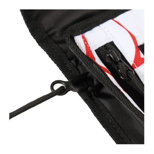 メインポケットのほか、取出しに便利な外側のメッシュポケットと、小さめのジップポケットの3つを配備。キャップクリップを装着可能なループも配備しています。
