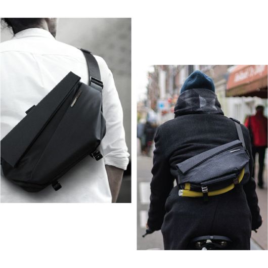 【肩への負担を抑えるショルダーストラップ】シーンに合わせて瞬時に長さを調節。さらに左右どちらの肩にかけても違和感のない設計になっています。