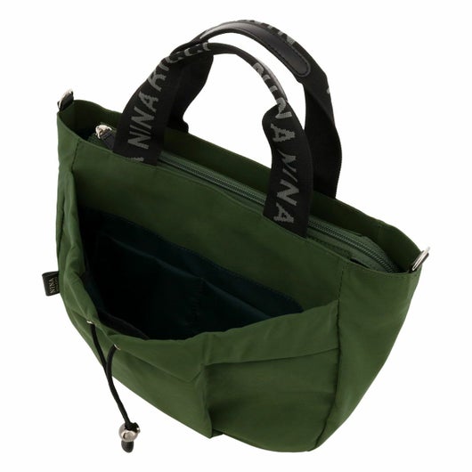 ニナ リッチのアパレルのディテールでも多用されているドローコード(巾着)を前ポケットに使用し、64クロス特有の風合いとともに独特の雰囲気を醸し出しているバッグシリーズです。