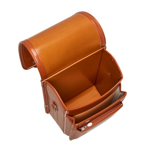 オオバランドセルだけの特許形状トラピーズ(C)は、背中側の幅を広げA4フラットファイルがしっかり収納可能に。一方フタ側はそれよりもやや狭くすることにより、お子さまが背負った姿がスタイリッシュに見えるフォルムです。たっぷりの収納力はもちろん、見た目も美しい、広くて小さいマジカル構造です。