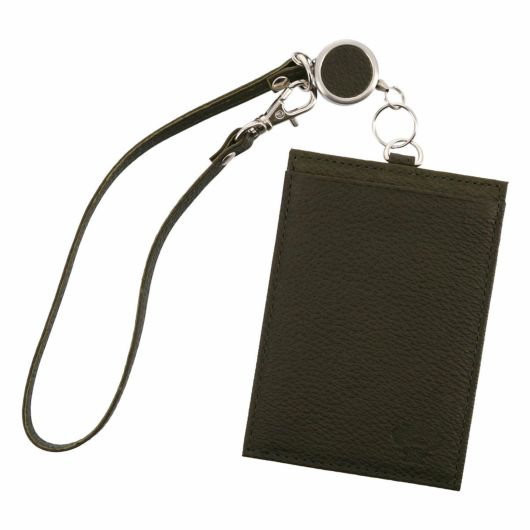 内装にワンポイント革の変化を付けたポインテッドシリーズリール付きパスケース。国産のステアを使用し姫路のタンナーで革を生産しました。