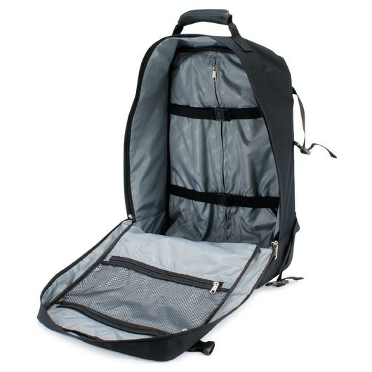 キャリーケースの収納力とリュックの機動力を合わせた進化型2WAYリュックキャリー。バッグ内に完全収納可能なキャリーバーは3段階調節可能。収納可能なリュックベルトはチェストハーネス付きで安定して背負うことができます。背負った際に背中がキャスターで汚れないワンタッチカバー付き。LCC機内持ち込み対応サイズでLCCを利用したショートトリップに最適です。
