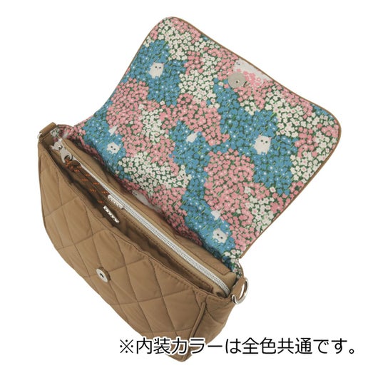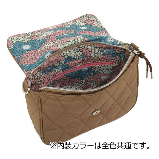 ふわふわのキルティング素材にジプシーの刺繍ワッペンがキュートなショルダーバッグが登場。500mlペットボトルが横にして入るサイズ。背面にはスマホなどをサっと取り出せる便利なポケット付き。裏地にはジプシー×フラワーのオリジナルプリントが施されており、遊び心いっぱいのアイテムです。