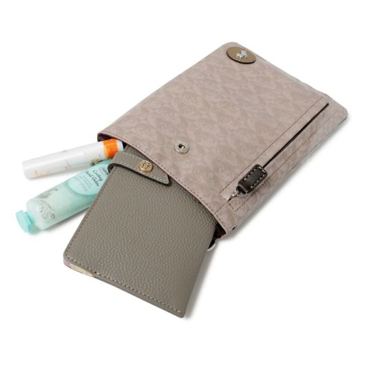 コートやジャケットの下でも斜め掛けしていただける薄型のポシェットは、スマホやパスポートなどの収納に便利です。