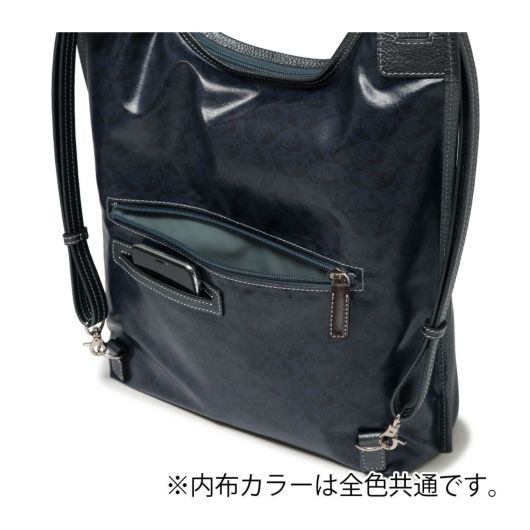 シュッとショルダーを引っ張るだけでリュックにできる3WAYバッグです。他にはトート持ち、斜め掛けでお使いいただけます。