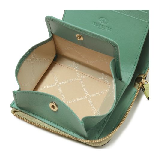 カラー展開は通年使える上品なカラーリングです。人気のミニL字財布の小銭入れをボックス型にアレンジし、より使いやすくなりました。コンパクトなサイズながら必要なものはしっかりと入ります。