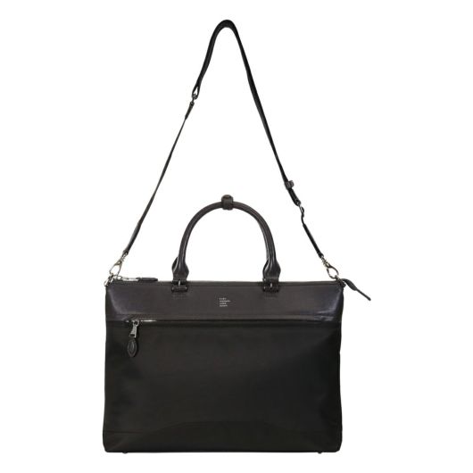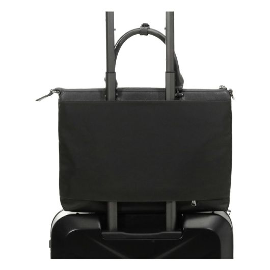 高品質なポリエステル製のメイン生地と上質なレザー付属で作られたビジネスバッグ。様々なサイズのポケットが備わっており、ノートパソコンやタブレット、書類、携帯電話などの必需品を整理しやすくなっています。キャリーオン仕様、取り外し可能なショルダーストラップ付き。