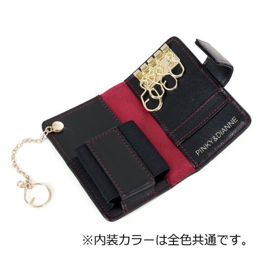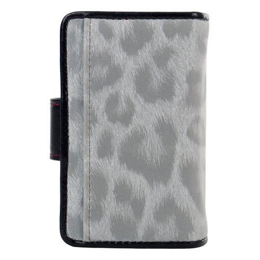 ソフトで手触りの良いヒョウ柄素材を贅沢に使った高級感あふれる「ソフトレオパード」シリーズ。トーンオントーンの配色なのでインパクト強めに見えがちなヒョウ柄も、シックで洗練された印象に仕上がっています。石をたっぷり使ったロゴの金具も華やかさをプラスしたゴージャスポイント。キーケースは車のスマートキー対応です。