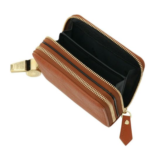 コンパクトなサイズながらもファスナーポケットを二つ備え、カードや現金を機能的に分けて収納できるアイテムです。