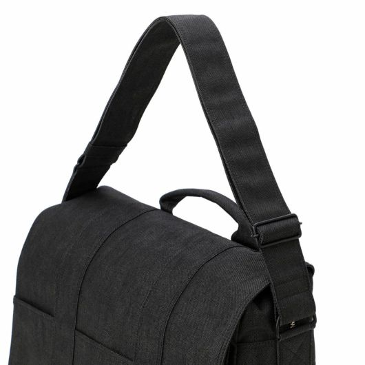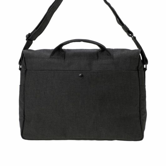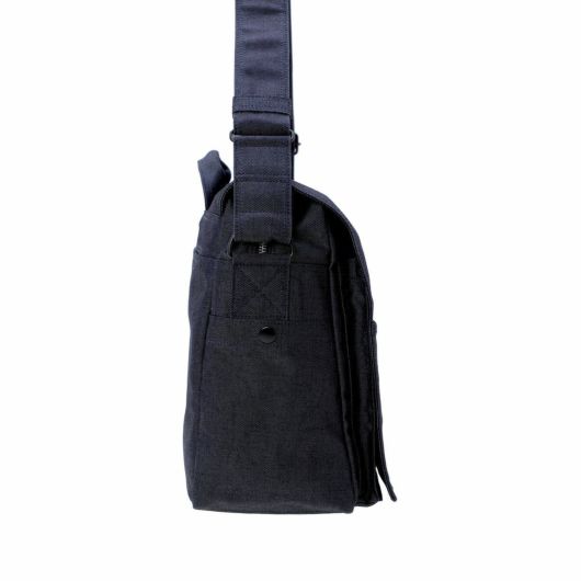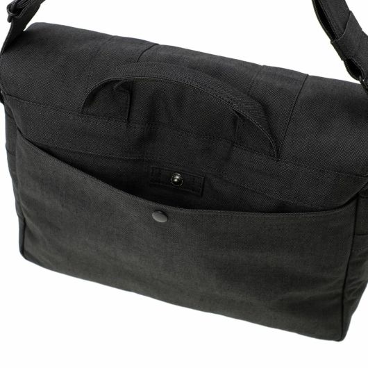 ショルダーバッグはA4サイズの書類が入るサイズでマチ幅もあり、かさばる荷物の収納も可能です。フラップにはスマートフォンやパスケースなど、取り出す頻度の高い荷物を収納するのに便利なポケットを備えています。ショルダーストラップの付け根にDカンを付属しているので可動域が広く、体にフィットしやすい仕様です。本体上部のハンドルで、手持ちのスタイルで持ち運ぶこともできます。