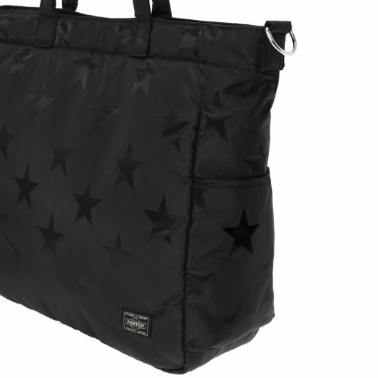 光の角度によって立体的な表情が浮かび上がる星柄とPORTER ロゴを組み合わせたオリジナルの生地は、ブラックワントーンで上品な印象に仕上げています。