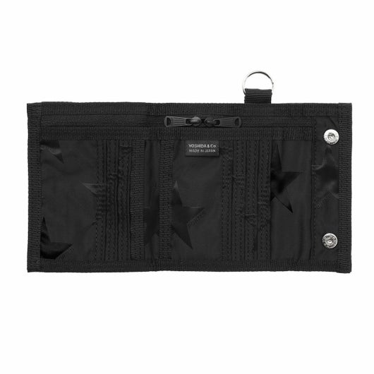 光の角度によって立体的な表情が浮かび上がる星柄とPORTER ロゴを組み合わせたオリジナルの生地は、ブラックワントーンで上品な印象に仕上げています。