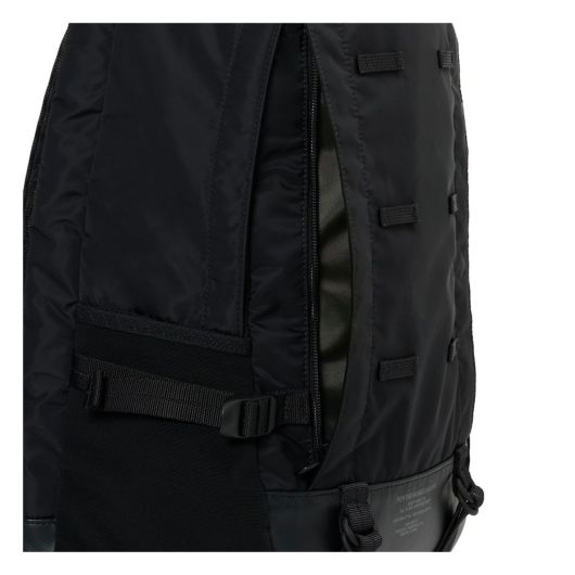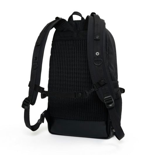 ミリタリーバッグから着想を得たモールシステム。通り雨などの急な天候に対応する三層構造のナイロンタフタがもたらす生活防水性。雨が降ったと思いきや突然雲の合間から日が差したりと気温の変化にも対応する通気性や速乾性に優れた背面構造の「キュービックアイ(R)」ピケ ライト。ワンハンドのワンアクションで滑らかな調節が可能なキャリングエクイップメントストラップ。掛け心地は極めて軽く、肩への負担を軽減するショックアブソーバーを搭載したショルダーパッド。