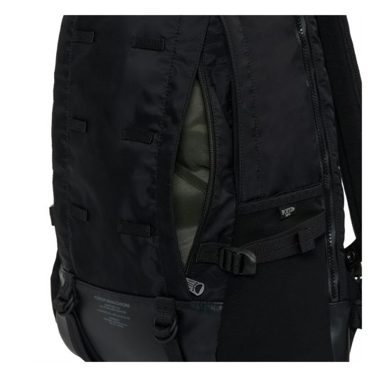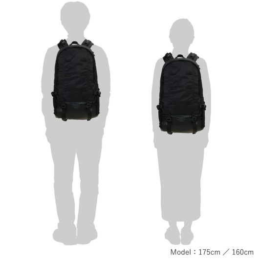ミリタリーバッグから着想を得たモールシステム。通り雨などの急な天候に対応する三層構造のナイロンタフタがもたらす生活防水性。雨が降ったと思いきや突然雲の合間から日が差したりと気温の変化にも対応する通気性や速乾性に優れた背面構造の「キュービックアイ(R)」ピケ ライト。ワンハンドのワンアクションで滑らかな調節が可能なキャリングエクイップメントストラップ。掛け心地は極めて軽く、肩への負担を軽減するショックアブソーバーを搭載したショルダーパッド。