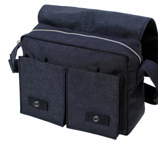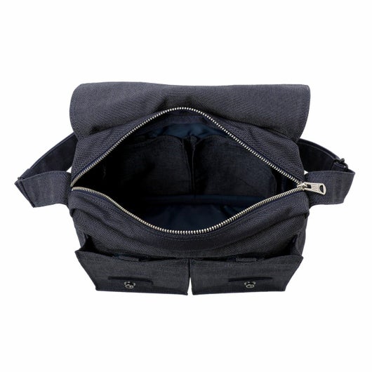 ショルダーバッグ(S)はB5サイズの書類や500mlのペットボトルが入るサイズで、普段使いや旅行などに最適なアイテムです。内装やフラップを上げたバッグの前面に、小物の収納に便利な小分けポケットを備えています。本体上部にハンドルを備え付けているため、手持ちのスタイルで持ち運ぶこともできます。