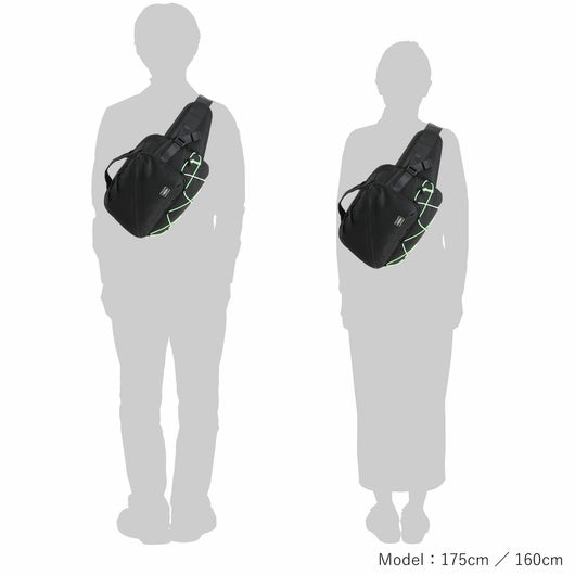 背負った時に目を引く底部のストレッチコードは伸縮性があり、衣類や折り畳み傘などを 簡易的に収納するのに便利な仕様です。各アイテムには、ビジネスシーンにも対応するブラックとスポーティーな印象の蛍光グリーンの2色のストレッチコードが付属し、気分によって付け替えを楽しんでいただけます。