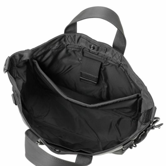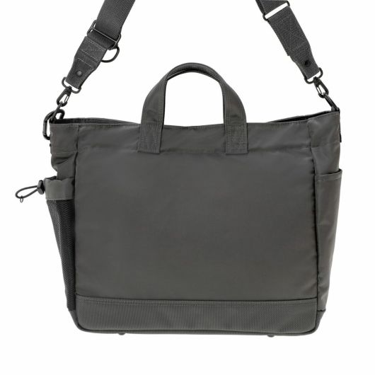 2WAYトートバッグはA4の書類が収納できるサイズで、内装に13inchのPCを収納できるクッション材入りのポケットを設けています。サイドポケットには600mlのペットボトルや折り畳み傘が収納可能です。