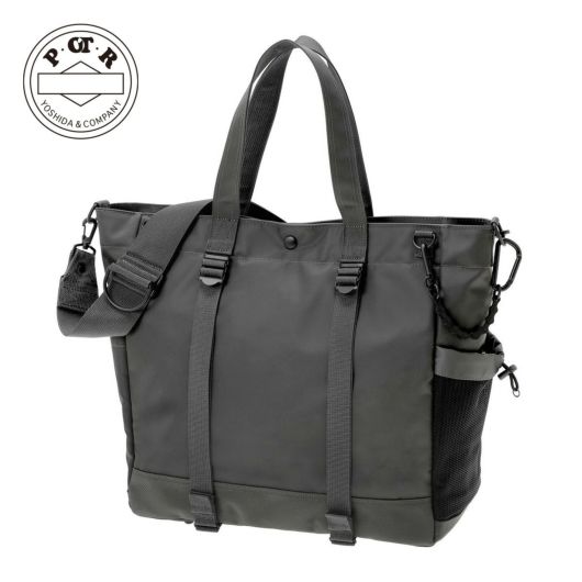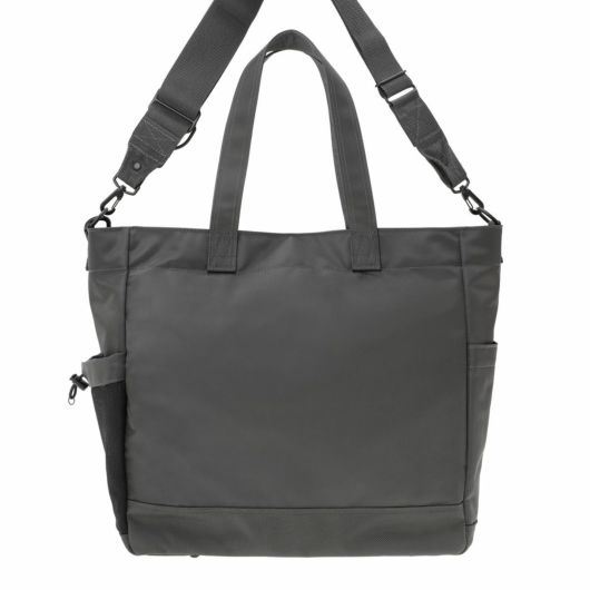 2WAYトートバッグ(L)は大容量のメイン収納部内に14inchのPCを収納できるクッション材入りのポケットを設けた、オン・オフどちらのシーンでも使いやすいアイテムです。ハンドルは肩掛けにも対応しています。サイドのポケットには600mlのペットボトルや折り畳み傘が収納できます。