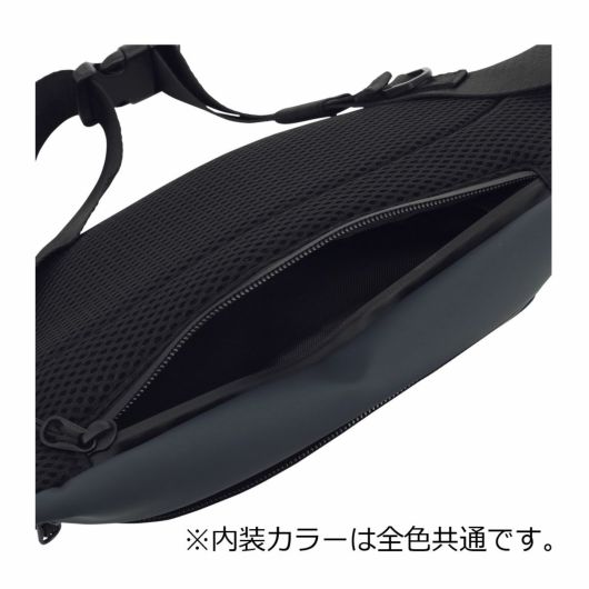 ボディバッグとしてもウエストバッグとしても使える2WAYバッグ。Dカン付きでワイヤレスイヤホンやキーなどを装着できます。背面の隠しポケットは旅先でのセキュリティ面も安心です。見た目以上の収納力が魅力です。
