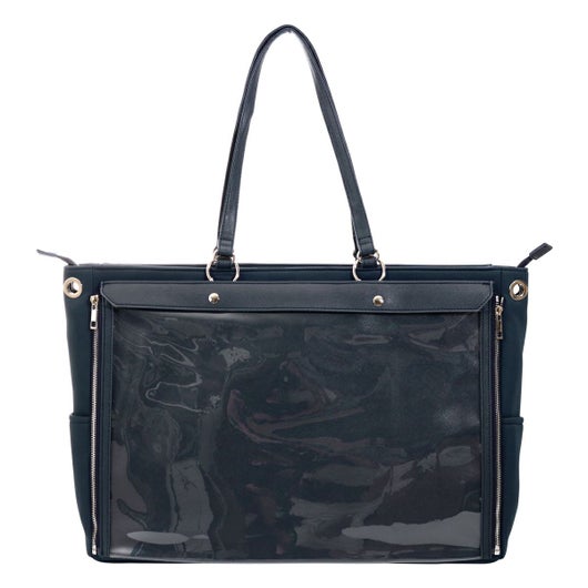 普段使いもできる?! 『A3サイズ』痛BIGトートバッグ 痛バッグ itabag 痛包『時間、場所、場合、いつでも推しと一緒!収納面回転シリーズ』 前面のビニール面(缶バッジ等を収納する部分)をサイドファスナーで脱着回転して普段にも使用できる機能を付属した痛BIGトートバッグです。 軽量化のため本体素材ウェットスーツ風素材を使用し、ハンドル等にPU素材を使用しております♪