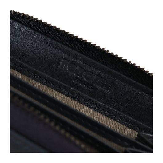 革らしい風合いを残しながら顔料・染料をバランスよく使い仕上げたスムース革です。表面が平滑な革だからこそrenomaの顔である「r」を凸加工し単色でありながら一目置かれるインパクトのある商品仕上げとなっています。