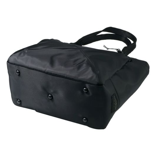 ビジネスシーンにもマッチするBLACK x GREYのロゴネームは本企画用にオリジナルデザインとなります。キャリーケースにセットできるスマートスリーブ仕様でキャリーケース使用時にも快適に使用可能です。底ビョウ(5点)を採用し、自立性を高めています。