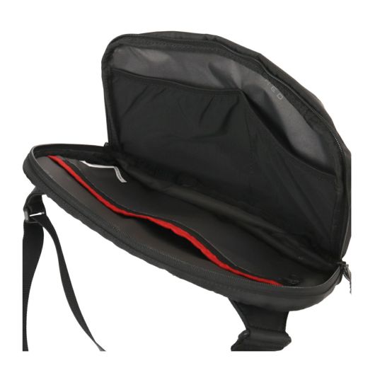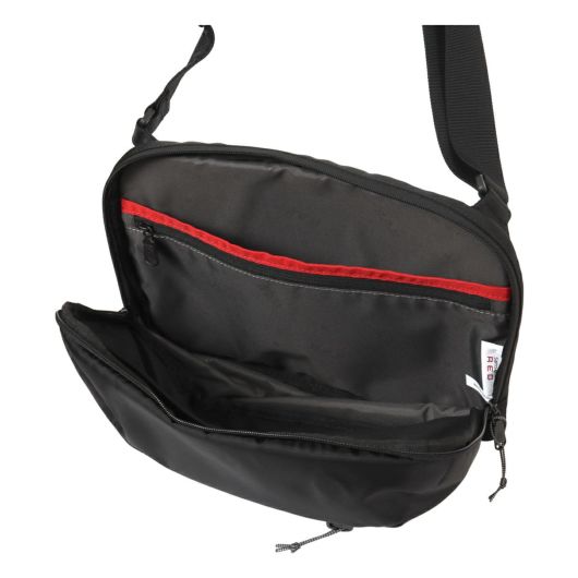 前面に斜めに入ったファスナーがデザインの定番「BIAS JACK」シリーズ。内装のポケット縁には赤いラインを施されており、暗い場所でも認識しやすいように日常の様々なシーンでの利便性を向上させています。軽量設計され、タフな素材としっかりと安定したショルダーベルトでデイリーに持ち歩きたい優秀アイテムです。