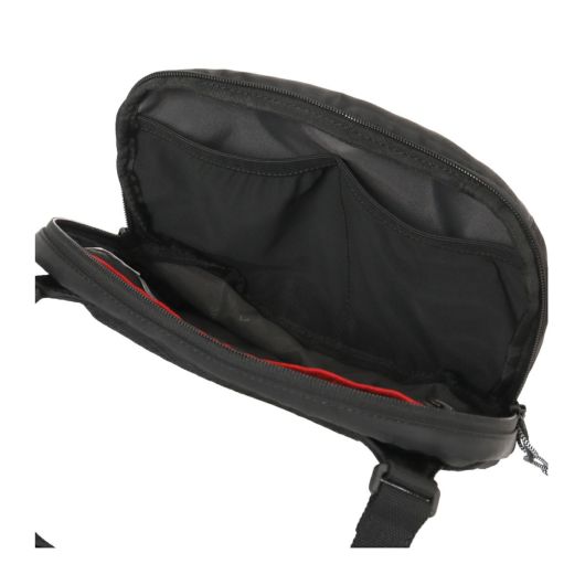前面に斜めに入ったファスナーがデザインの定番「BIAS JACK」シリーズ。内装のポケット縁には赤いラインを施されており、暗い場所でも認識しやすいように日常の様々なシーンでの利便性を向上させています。軽量設計され、タフな素材としっかりと安定したショルダーベルトでデイリーに持ち歩きたい優秀アイテムです。