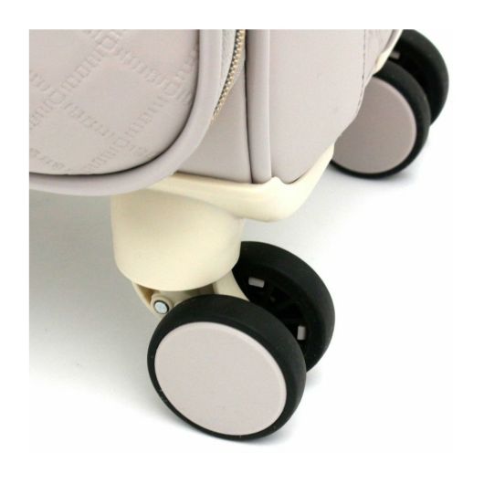 安定した走行性を発揮するダブルキャスター搭載。360度回転するので方向転換も思いのままに。ファスナートップには穴が開いているのでお気に入りのキーホルダーを付けることもできます。(キーホルダーのサイズによっては付けられません。飛行機に預ける際は紛失、破損防止のため外すことをおすすめします。)