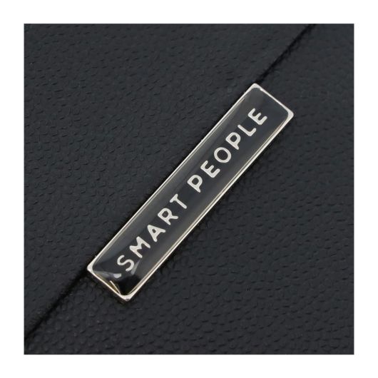 メタルプレートの上に透明樹脂を流し込んだロゴ仕上げにより、上品な立体感と高級感を演出しています。