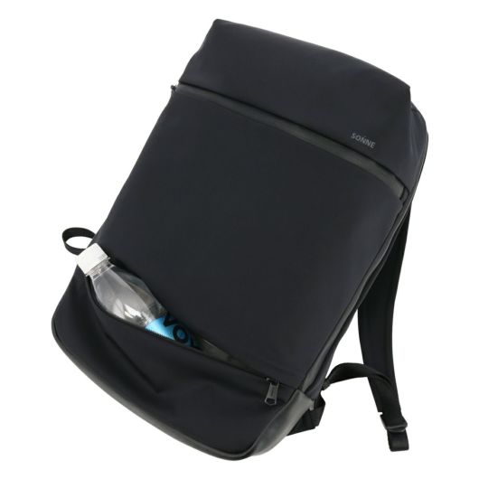 ハンドルや底面部分には軽量かつ強度に強いマイクロファーバーレザーを使用し、メイン素材には上品な適度に光沢のある撥水ナイロンを使用。
