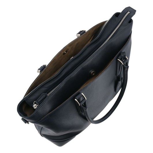 オン・オフ兼用で使える万能トートオールレザーで仕上げたファスナータイプのトートバッグ。PCや書類等もしっかり入るサイズ感で、定期や携帯を取り出しやすい外側ポケットなど、機能面も充実しています。ハンドルは肩かけしやすいよう長めの設計。着脱可能なショルダーストラップ付きです。バランスのとれたデザインは、ビジネス・カジュアル両方の幅広いシーンでお使いいただけます。