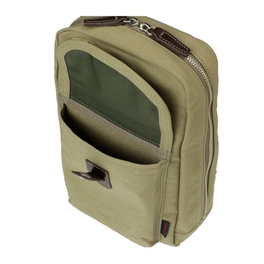 約W18×H31×D9cm対応サイズ:A5重量:約480gショルダー長さ:約75~115cm 【42】ベージュ【50】グリーン 10号帆布(パラフィン加工)牛革 ダブルファスナー式開閉内側:フリーポケット大×1フリーポケット小×1ペンループ×2前面:スナップ式かぶせポケット×1背面:左右アクセス可能ファスナーポケット 日本製素材の性質上汗や雨で湿った場合、摩擦等によりほかの衣類等に色が移ることがありますのでご注意ください。天然素材の特性による帆布・皮革等に経年劣化が生じる場合がございます。