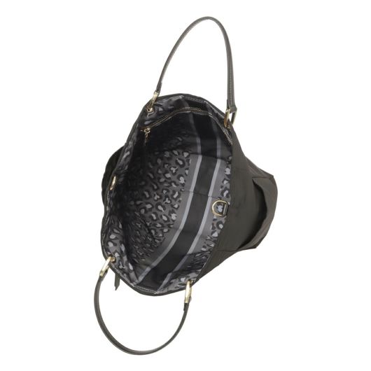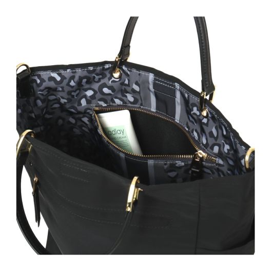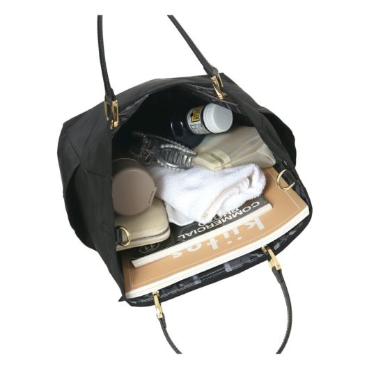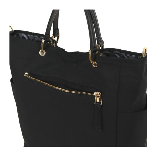 シンプルなデザインはデニムからスカートまでコーデを選ばない、デイリーユースなミディアムサイズのトート。リバーシブル仕様で、合わせやすいベーシックカラーとスタイリングのアクセントなるレオパード配色。背面にはスマホサイズのファスナーポケット、両サイドにはボトルがすっぽりと入る深めのポケットをセット。取り外し可能なカラーチャームセットで、気分に合わせたスタイルを楽しめます。ハンドルやファスナートップ、ブランドタグには人工皮革を使用し、カジュアルさを抑えてくれます。付属のショルダーをつけて2WAYバッグとしてもお使いいただけます。
