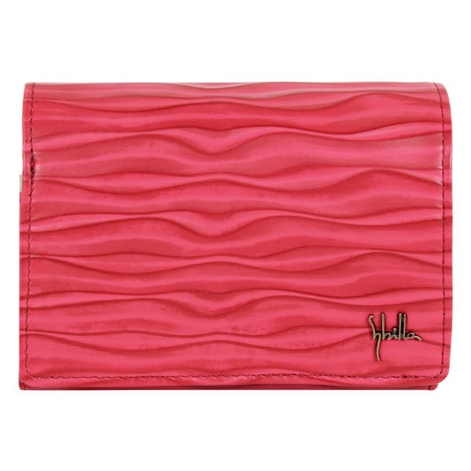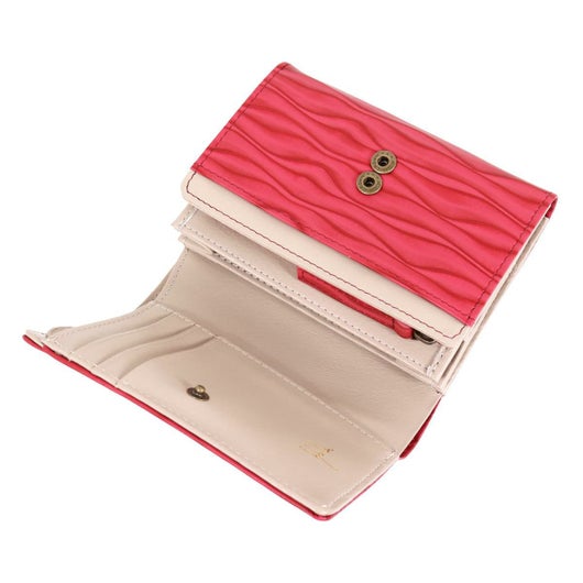 ウェーブの型押しが印象的なシリーズ。型押しをした後に、陰影をつけるために染料で斜め吹きをしていて、より立体的な柄が浮かび上がってきます。二つ折り財布ながら札入れもついておりコンパクトかつしっかり収納できます。シンプルだけど他にはない、オシャレなシリーズです。