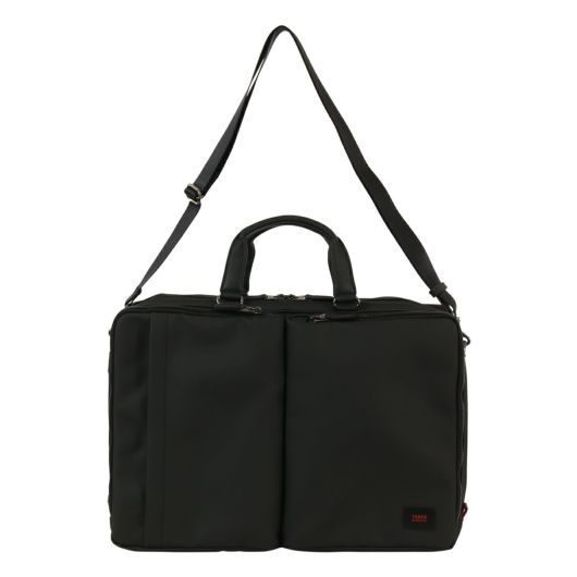 出張にも対応したタケオキクチのB4サイズビジネスバッグ。斜め掛けとしても使える肩紐付きの2WAYバッグです。従来の出社型「オフィスワーク」と、自宅やシェアオフィスなどオフィスと離れた場所で働く「テレワーク」を組み合わせた働き方が増えた中で柔軟に対応できるよう、15.6インチノートパソコンの持ち運びに対応しています。オールブラックでどんなシーンでも使いやすいビジネスバッグですが、ポイントにさりげなくワイン色を施しています。収納機能抜群で、普段の通勤から短期出張まで幅広く使えるビジネスバッグです。